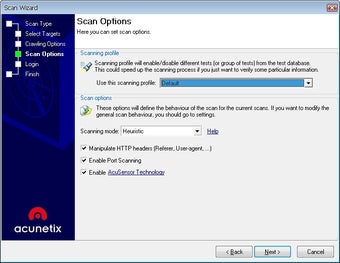 Anhand eines Assistenten erzeugt Acunetix Web Vulnerability Scanner ein Testprofil. Einmal konfiguriert, startet die Software entsprechende Scheinangriffe auf die angegebene Webseite – von untergeschobenem SQL-Code über ausführbare Code-Schnipsel bis hin zu Passwortattacken. Dabei protokolliert Acunetix Web Vulnerability Scanner minutiös alle Reaktionen der entsprechenden Webseite mit.